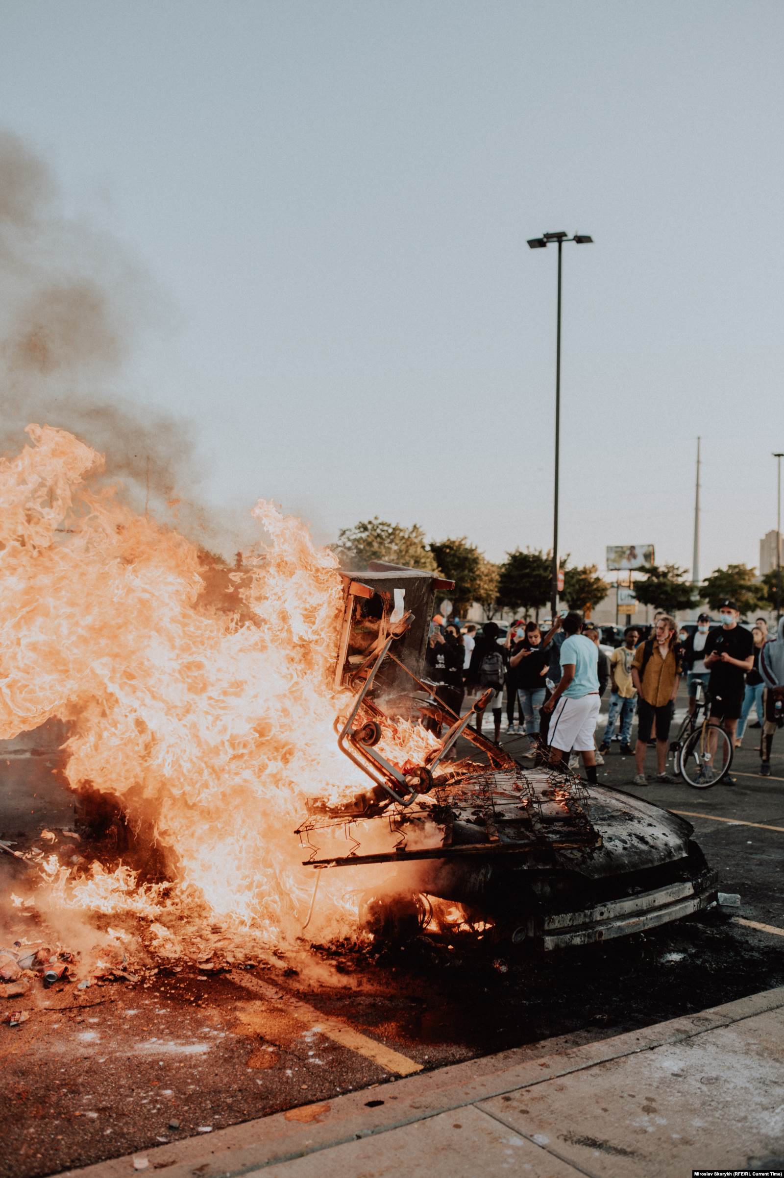Skorych recounted that the protesters he saw were both peaceful and violent: “…There were screams, people threw things at the [police] department, cars were already burning in the parking lot, and people were carrying things out of a store and just burning them directly on the car.On one side, people are singing, someone is praying. They’re truly expecting some kind of changes. On the other side, people just took out carts stuffed with things from the store and loaded them into cars.”