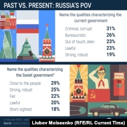 Russia's Soviet past outshone its Putin present for the 1,607 respondents in this Levada Center poll from June-July 2019. The survey questioned respondents about conditions in the late 1970s-early 1980s, before the 1985 advent of the Soviet Union's last leader, perestroika-and-glasnost advocate Mikhail Gorbachev.